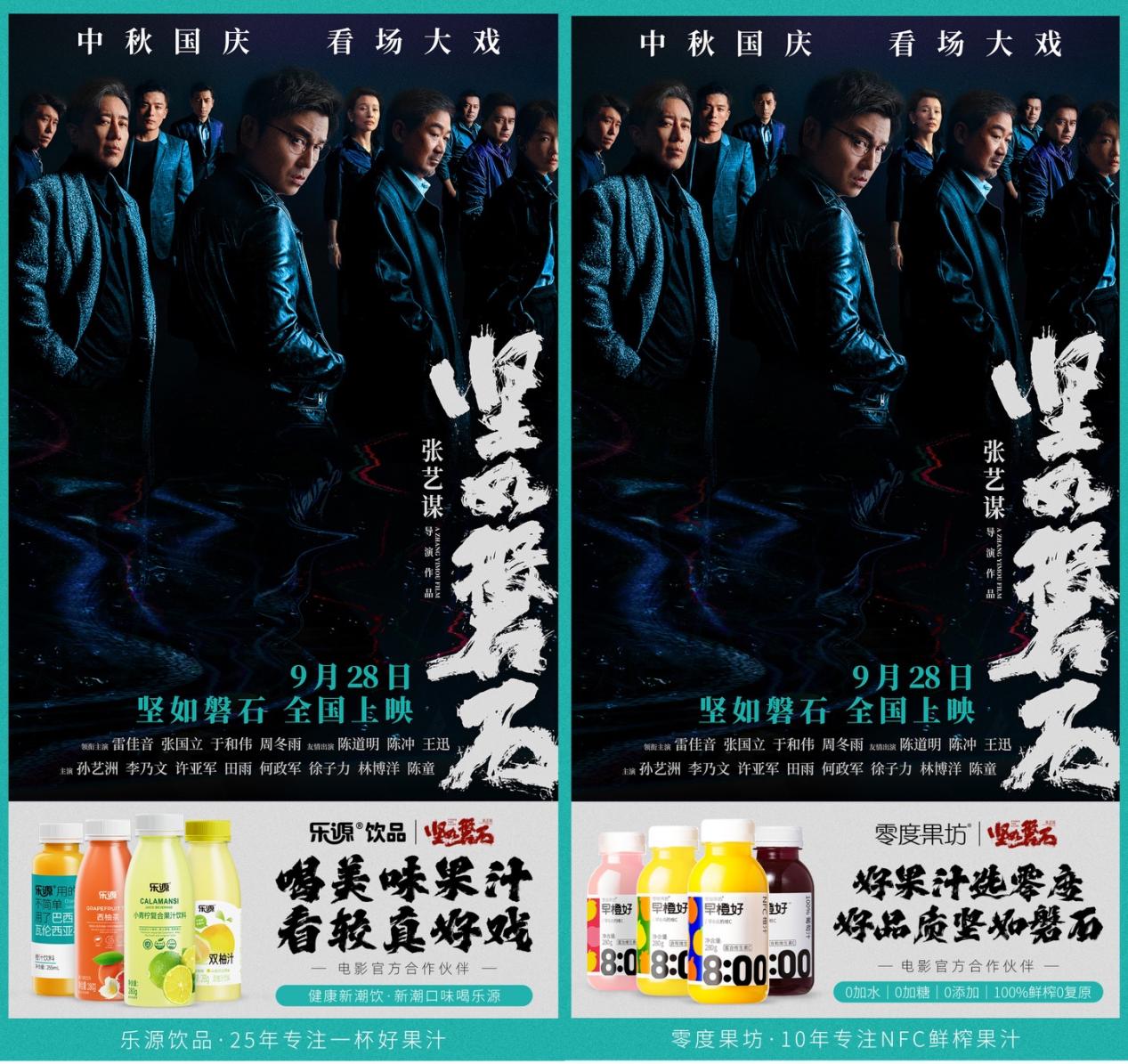 张艺谋导演的新片《坚如磐石》逐鹿国庆档,9.28即将在全国上映,乐源饮品成为本次的电影合作伙伴之一。这是张艺谋导演首次挑战的扫黑警匪题材的影片,被认为是“电影版的《狂飙》”。该片齐聚“雷佳音、张国立、于和伟、周冬雨、陈冲”等实力派演员,由张杰张碧晨强强联袂、献唱电影主题曲,观众期待值拉满!电影《坚如磐石》打磨了整整四年时间,全员素颜飙戏、电影人物个性鲜明,传递的是一种坚韧不拔的精神,与乐源的品牌理念不谋而合。